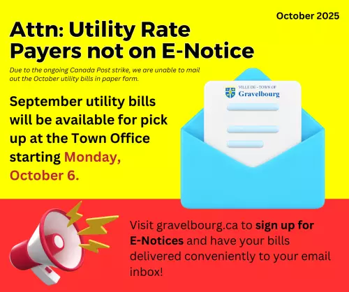 Pas inscrit à l'avis électronique? Inscrivez-vous dès aujourd'hui ou récupérez votre facture papier au bureau de la ville à partir du 6 octobre.